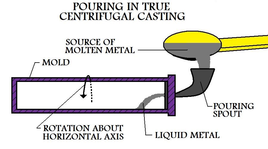 a.    Khái niệm : Quá trình điền đầy kim loại lỏng vào long khuôn đang quay. Nhờ lực ly tâm kim loại sẽ bám đồng đều vào thành và đông đặc tại đó. Chủ yếu đúc các chi tiết tròn xoay, rỗng ruột.